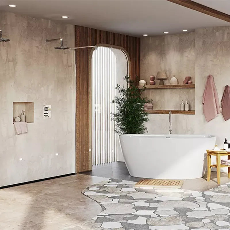 Freestanding tubs can look out of place since they don't connect to the walls. Built-in, recessed, or platform tubs that fit snugly into the space blend better.
