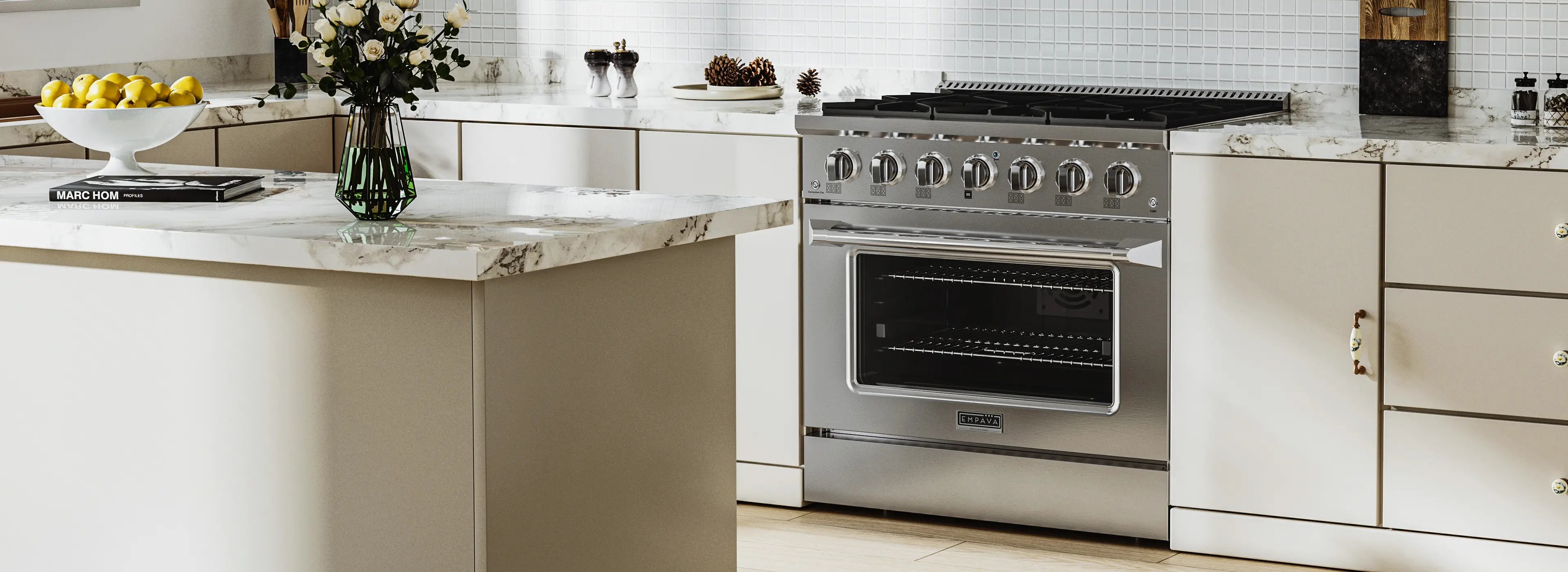 Not enough room for a separate cooktop or built-in oven? Our 2-in-1 gas range allows you to begin your culinary creations right away, no kitchen renovations needed.
