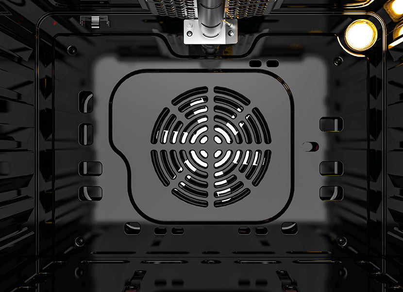 - The anticlockwise fan circulates heat faster and distributes it evenly.
