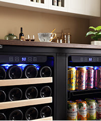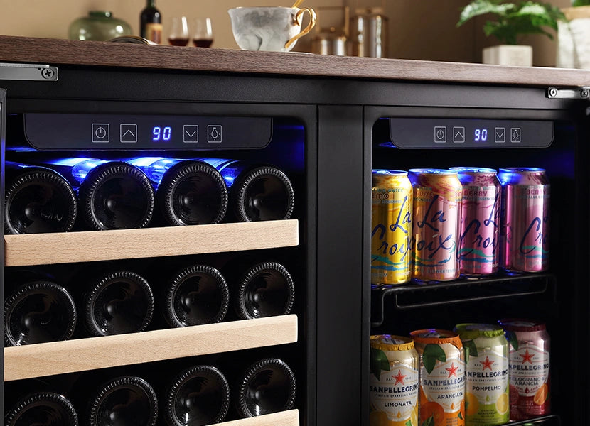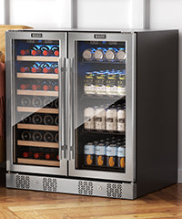 - 2-in-1 wine and beverage fridge fit to sit next to couch.