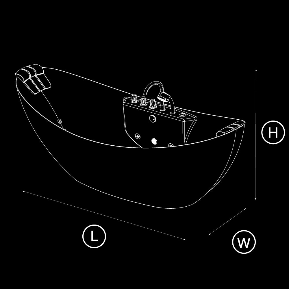 67" Freestanding Boat-shaped Whirlpool Bathtub with Center Drain