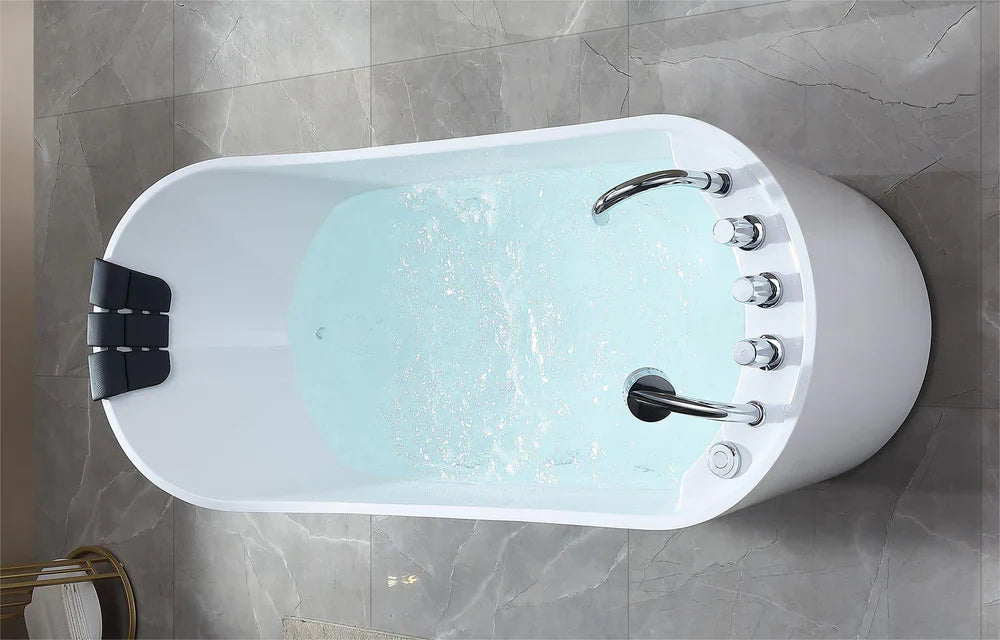 The decision to use 100% acrylic material is driven by our dedication to providing the best user experience. This material boasts perfect anti-mildew, anti-crack, and antibacterial properties. In addition, we have chosen stainless steel fixtures for their long durability and placed the drain on the leg end to avoid accidental pop-ups. Furthermore, we have selected a waterproof pillow that is both antibacterial and easy to maintain. Every detail matters to us!