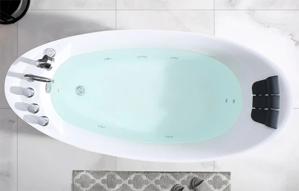 Made with acrylic material, this tub is crack-resistant and durable, as they do not have pores or absorb water, which means less frequent cleaning and mold prevention. They are also lightweight, making installation on any floor safe without the risk of collapse, and provide excellent thermal insulation to maintain hot water temperature for longer periods. If choose a tub, choose the acrylic type.