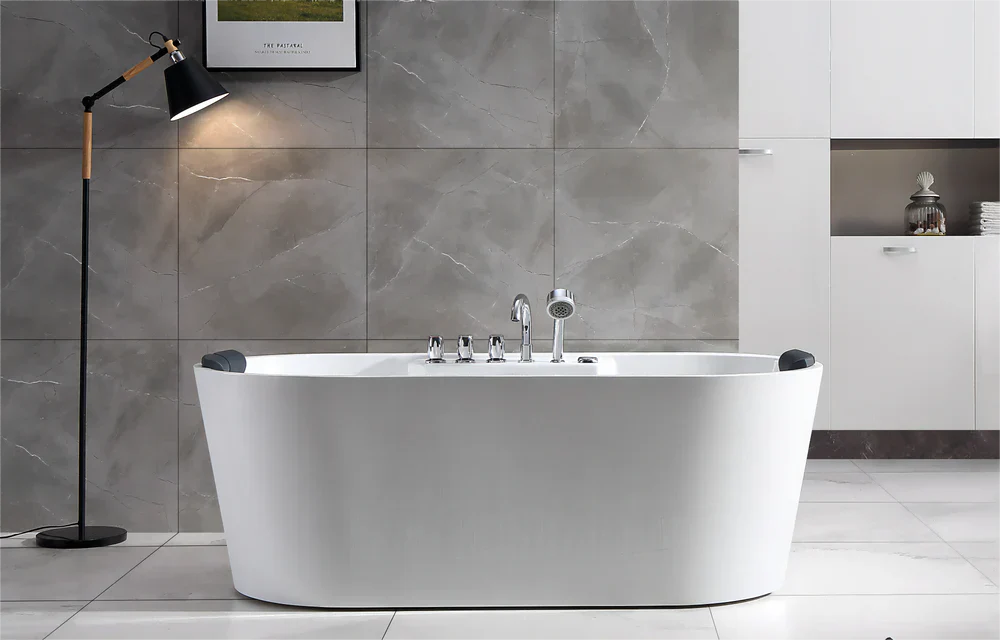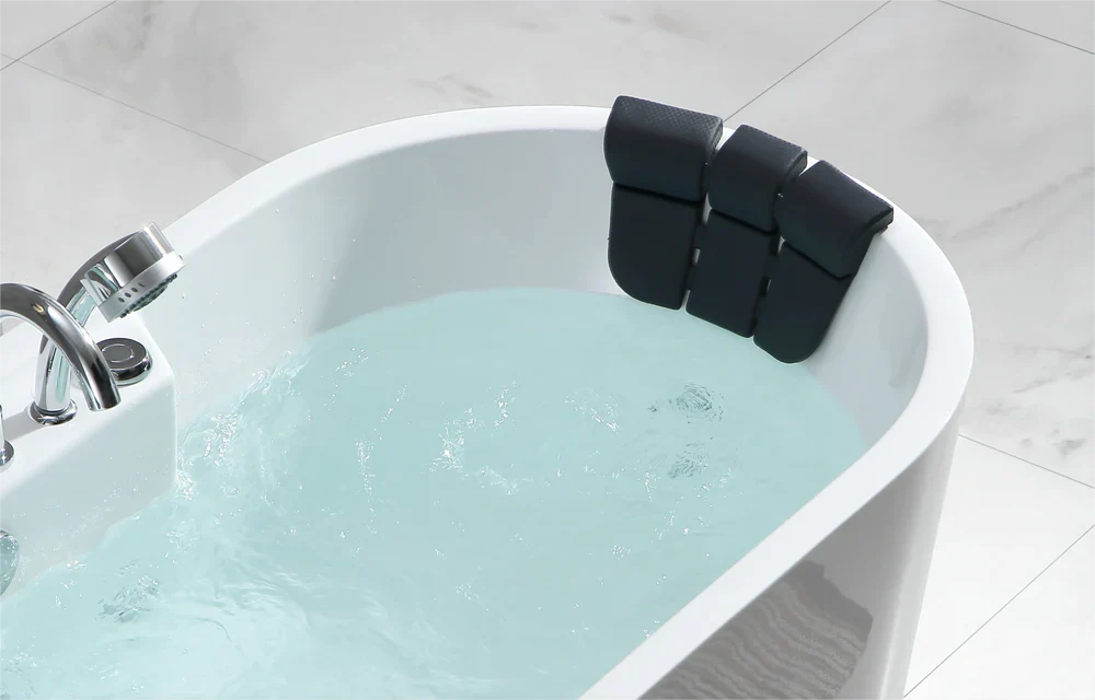 We chose 100% acrylic material for the best user experience, with anti-mildew, anti-crack, and antibacterial properties. We used stainless steel fixtures for durability, placed the drain on the leg end to prevent accidental pop-ups, and selected a waterproof pillow that is both antibacterial and easy to maintain. Every detail matters to us!