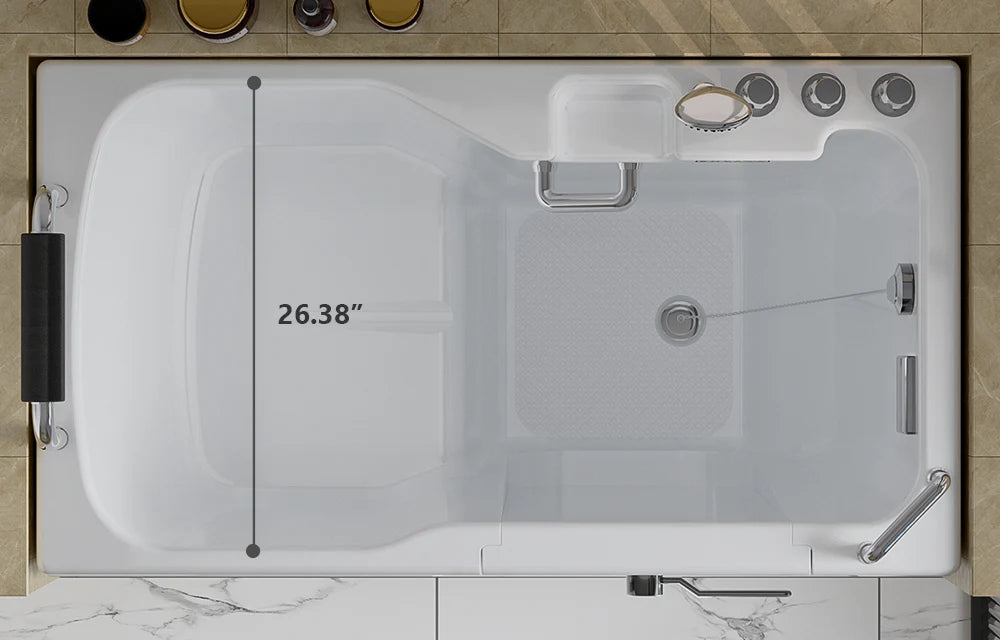 People of larger stature or those who have elderly family members of a larger stature should not miss this tub! With an increased curve around the reclining area measuring 26.38 inches in width and a larger corner curve design for all corners, this tub can hold up to 84 gallons of water and accommodate weights of up to 440 pounds, ensuring deep soaking relaxation for big frames!