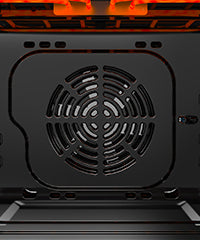 - The anticlockwise fan circulates heat faster and distributes it evenly.