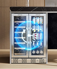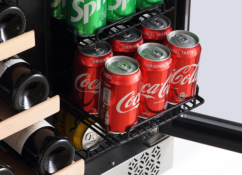 It can store up to 78 bottles of beverages with a volume of 12oz each and 20 bottles of standard 750ml wines.