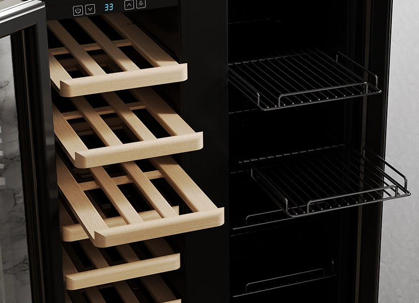 Dual zones with two individual doors to minimize temperature disruptions caused by opening the other zone's door.