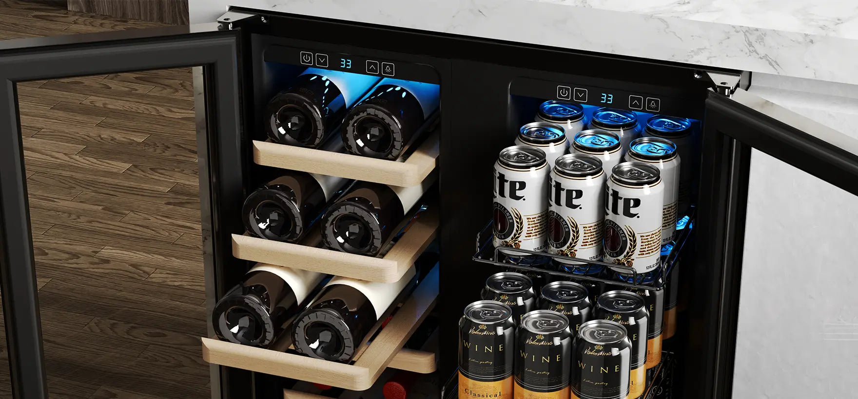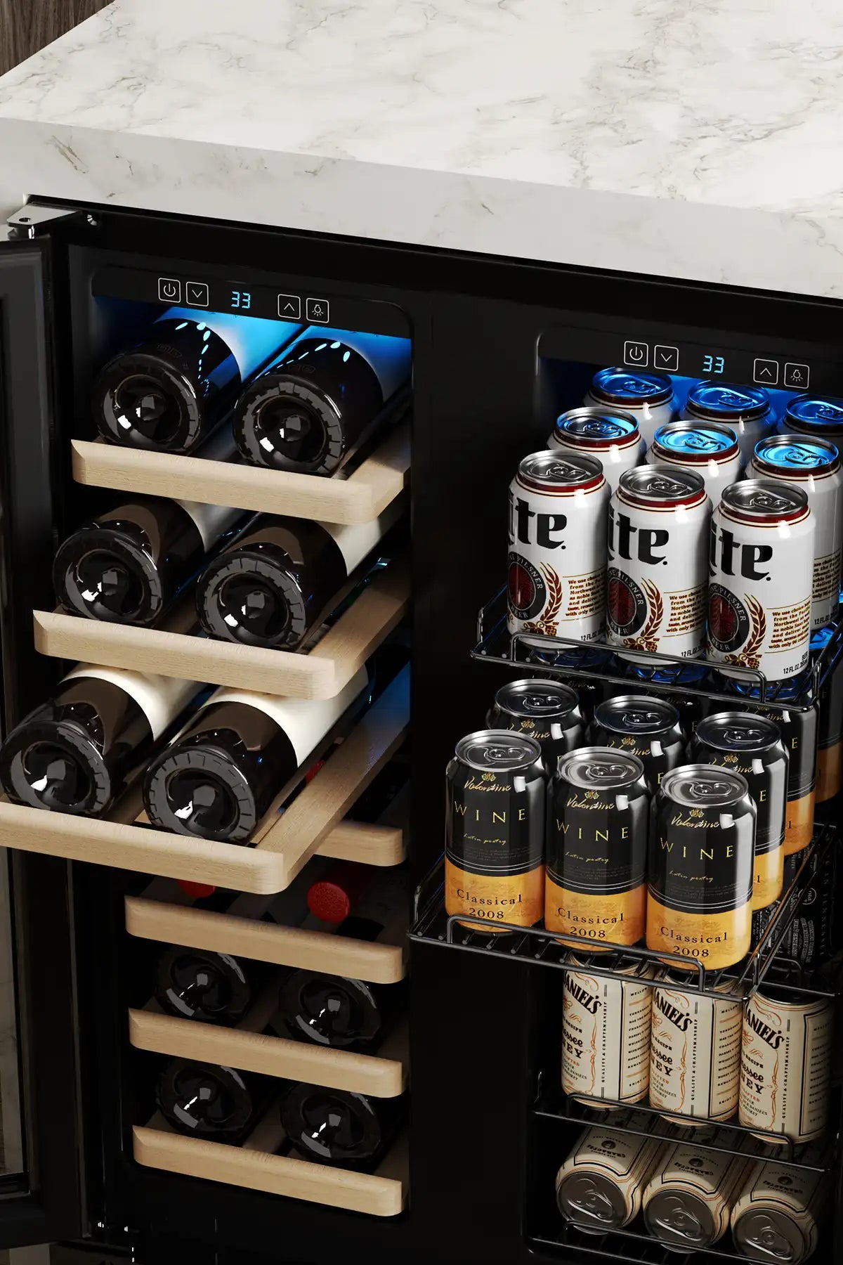 Empava 24 inch Dual Zone Wine and Beer Fridge Beverage Cooler