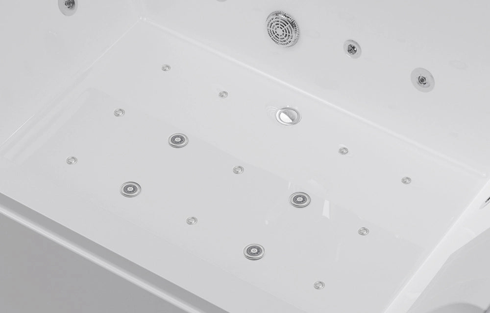 Let your worries melt away with the powerful dual massage system featuring 16 hydrotherapy massage nozzles and 19 soothing bubble massage nozzles. Hydrotherapy offers a powerful massage to ease sore muscles, while the bubble massage provides gentle relaxation. Combined with relaxing bubble jet lighting, this bath becomes your personal spa, ready to indulge your every need.