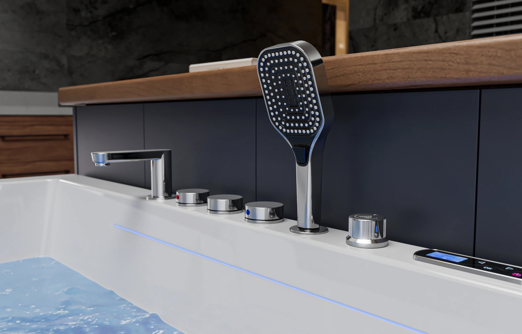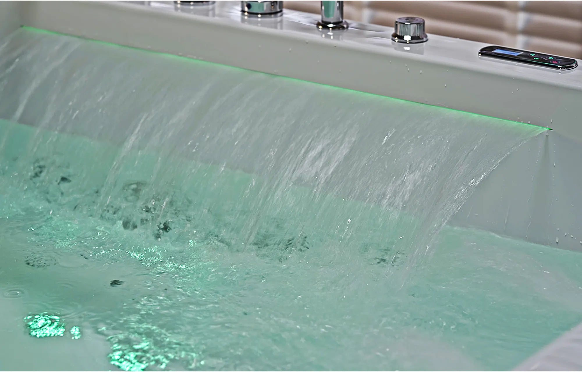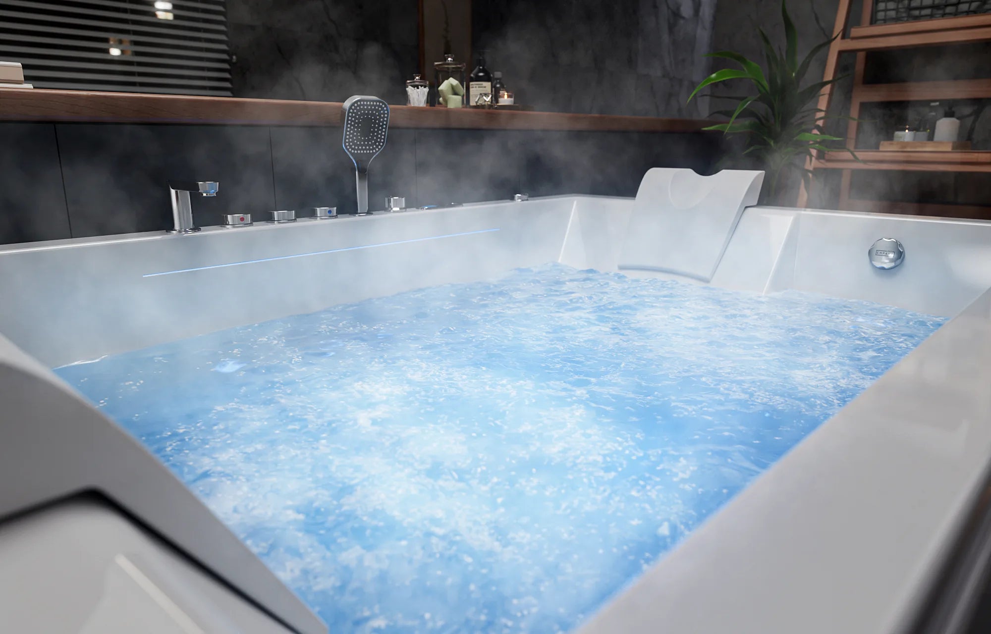 - Dual massage and waterfall features elevate relaxation.