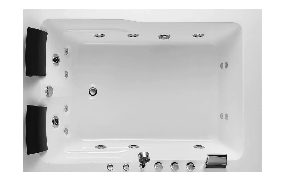 Based on the essential features of a standard two-person tub which includes wider interior angles allowing for more room for both individuals to fully stretch, a large capacity designed according to standard men’s and women’s size sum, and double headrest pillows, we have enhanced the jets by increasing their number to 16 pieces to provide a broader coverage for massaging both persons.