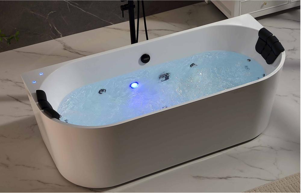 This beautiful bathtub is equipped with 18 gently positioned massage jets, designed to provide soothing relief for your back, waist, and legs, promoting deep muscle relaxation and easing joint tension. The changing LED lights softly illuminate your bath, creating a calming ambiance that transforms your space into a peaceful retreat.